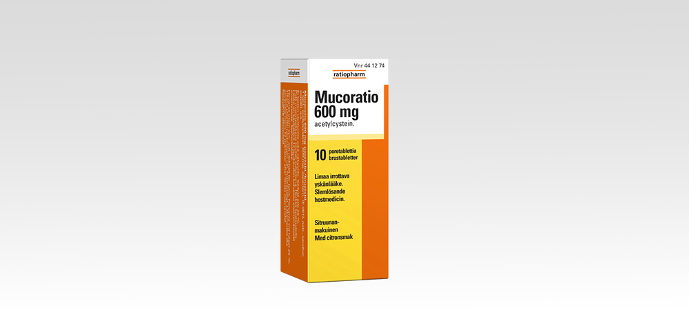 Mucoratio 600 mg poretabletit on tarkoitettu aikuisille irrottamaan limaa ja helpottamaan sen poisyskimistä vilustumissairauksien aiheuttamien keuhkoputkentulehdusten yhteydessä. Vaikuttava aine asetyylikysteiini irrottaa hengitysteissä olevaa sitkeää limaa.