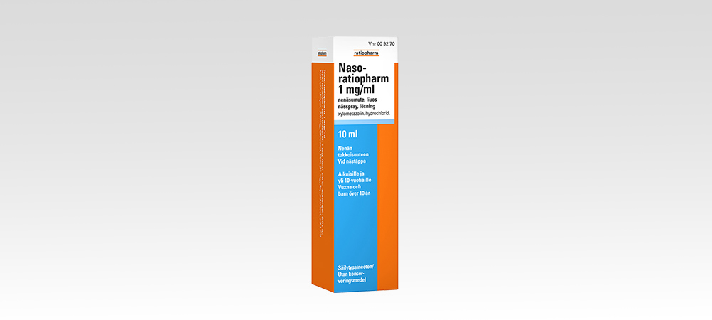 Naso-ratiopharm 1 mg/ml on nenän tukkoisuutta helpottava nenäsumute aikuisille ja yli 10-vuotiaille lapsille. Säilöntäaineeton nenäsumute avaa tukkoisen nenän nopeasti ja tehokkaasti.